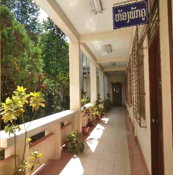 這是我上課的教學(xué)樓——語言學(xué)院,遵循著“看人先看臉”的原則,我們先看一下它的外在環(huán)境??催^前幾期介紹的小伙伴不難發(fā)現(xiàn),老撾國立大學(xué)的教學(xué)樓基本都是紅頂白墻,活潑跳躍的顏色彰顯著這所學(xué)校的朝氣。