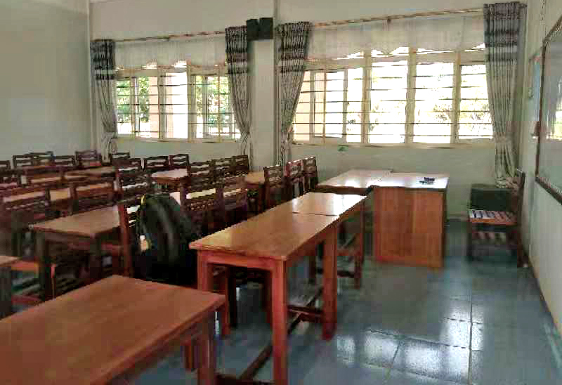 老撾國立大學(xué)的常規(guī)教室很樸素,但也很“奢華”。桌椅都是胡桃木色,與國內(nèi)單人單桌的形式不同,老撾國立大學(xué)的教室桌子大部分是長桌,三個學(xué)生一排,與這所學(xué)校倡導(dǎo)的多元化融合和開放兼容相呼應(yīng)。第一眼你也許會認(rèn)為教室內(nèi)的配置太過樸實,第二眼你就會發(fā)現(xiàn),這里的桌椅都是實打?qū)嵉挠材局瞥桑昧弦彩执蠓?,很符合網(wǎng)友口中“低調(diào)奢華有內(nèi)涵”的個性。