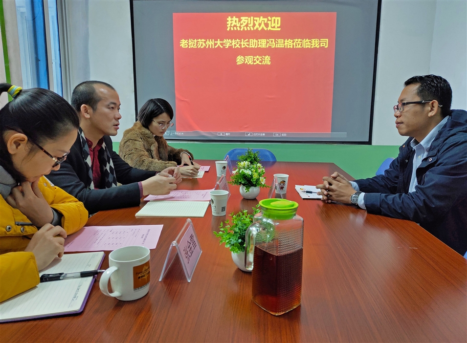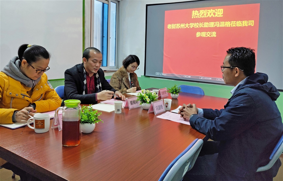 2019年1月7日,老撾蘇州大學(xué)校長助理馮溫格拜訪廣西金沛教育,與廣西金沛教育執(zhí)行董事粟宥朝、校長張金雪進(jìn)行座談。