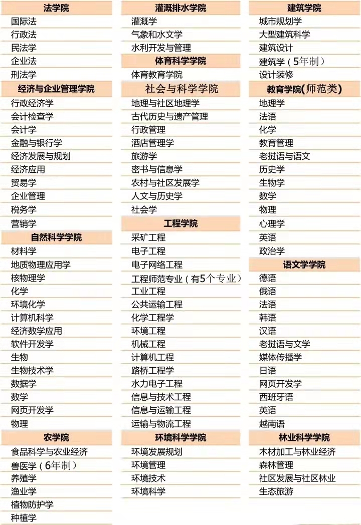 老撾國立大學(xué)總共有102個專業(yè),不分文理自由選擇。