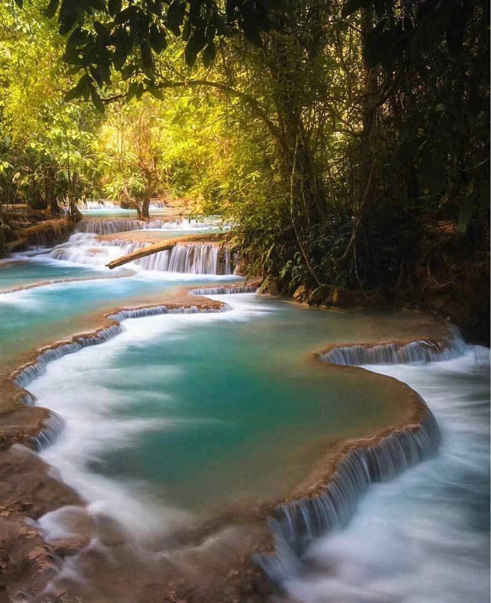 光西瀑布又叫金鹿瀑布,水流100多米熱帶叢林中傾瀉流入湛藍(lán)的水潭中,非常有氣勢(shì)。瀑布周圍森林茂密,郁郁蔥蔥,水質(zhì)也清澈透藍(lán)。瀑布層層疊疊,順流而下,形成多個(gè)泛著藍(lán)綠色光澤的小水潭。