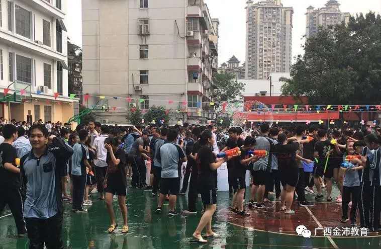 活動(dòng)開始,高三學(xué)子進(jìn)行“游龍翻身”的游戲,取“游龍翻身取金榜,十五中學(xué)我最棒”的含義。接下來身著東盟各國(guó)傳統(tǒng)服飾的學(xué)生為大家獻(xiàn)上了優(yōu)美的東盟國(guó)家舞蹈,展現(xiàn)了東盟各國(guó)的傳統(tǒng)舞蹈的魅力。隨后由學(xué)校校長(zhǎng)帶隊(duì),各年級(jí)老師共同參與,手持水瓢,將滿載祝福的水輕灑向所有高三學(xué)子,拉開了潑水狂歡的序幕。伴隨著歡快的音樂,潑水狂歡將本次活動(dòng)帶向高潮,大家積極參與,手持水盆、小桶、水槍,你追我趕,相互潑灑,傳遞著著祝福與歡樂。以多種形式將各國(guó)文化風(fēng)情融入學(xué)生的心理教育中。