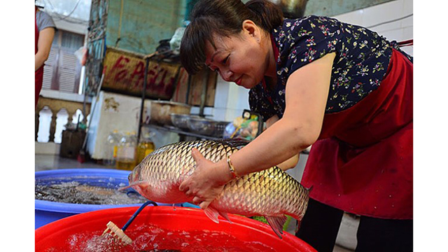 范氏青恒女士抓魚準(zhǔn)備做紅燒。