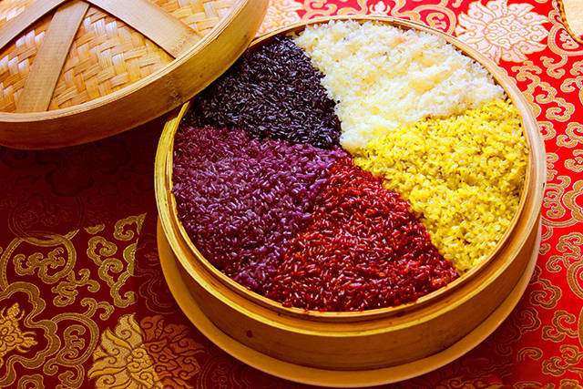 (色味俱全的五色糯米飯)