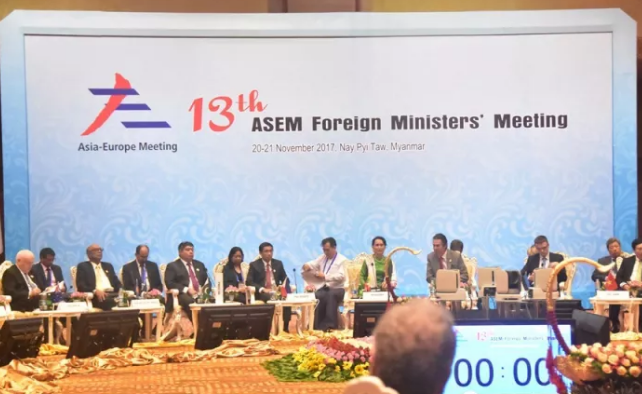 當(dāng)?shù)貢r(shí)間2017年11月20日,中國外交部長王毅出席在緬甸內(nèi)比都舉行的第十三屆亞歐外長會(huì)議,并在會(huì)上作了題為《共同構(gòu)建新時(shí)代的亞歐新型伙伴關(guān)系》的引導(dǎo)性發(fā)言。