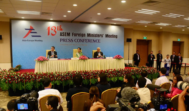 11月21日,杜昂山素季舉行新聞發(fā)布會(huì)表示:緬甸很榮幸主辦第十三屆亞歐外長會(huì)議,本屆亞歐外長會(huì)議共有來自亞歐51個(gè)成員國,亞歐會(huì)議秘書處和歐盟的54個(gè)代表團(tuán)和500多名代表參加了會(huì)議。代表團(tuán)由亞歐外長或高級代表領(lǐng)導(dǎo)。本屆會(huì)議之前的11月17日至19日期間,舉辦了90多個(gè)雙邊會(huì)議。