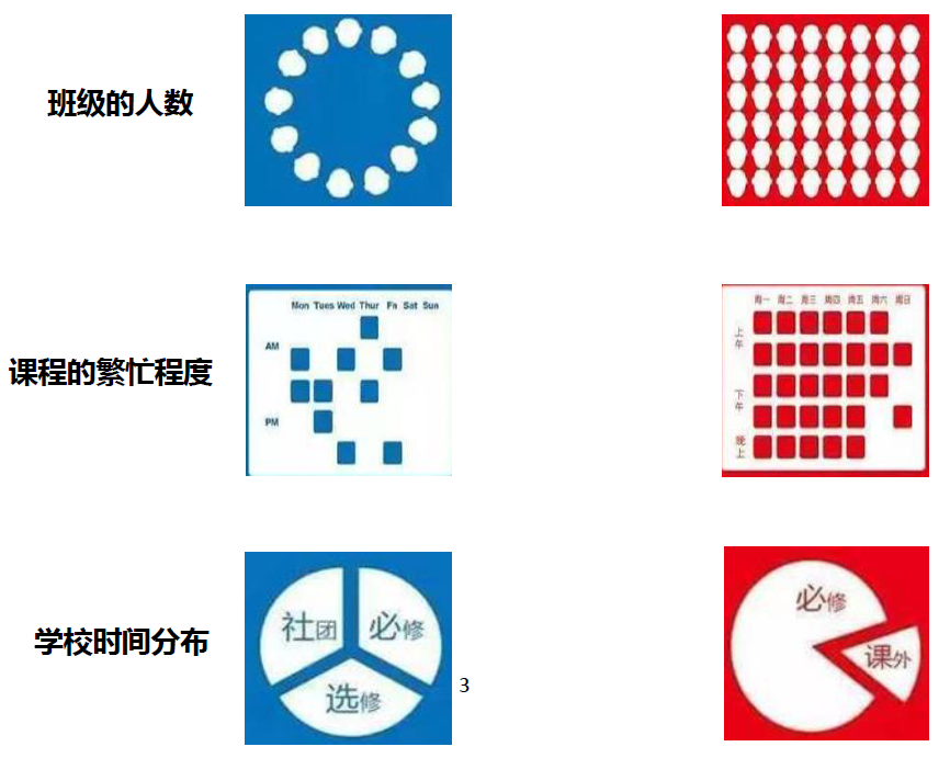 “嘗試教育”,學(xué)生為主;學(xué)生大多圍成圈,老師講究與學(xué)生的課堂互動